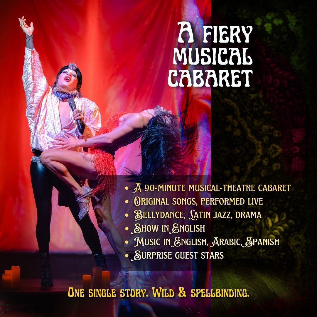 An arabesque drag show + burlesque/bellydance + live music + comedy + storyline + secrets